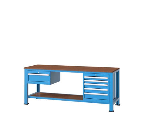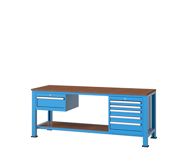 Workbench model frame made of 2,00mm thick DKP metal sheet strengthened with 6 bendings. Suitable for knockdown packaging. Coated electrostatic poweder paint. 25mm MDF worktop as standard. Includes rubber shoes to prevent floor scracthing. Drawer Cabinet body made of 1,20mm DKP metal sheet. Heavy duty robust body frame welded and has vertical reinforcements on each 4 corners. Drawer sliders made of 2,50mm HRP metal and run on 6201zz ball-bearings. Drawer interior walls have metal separator slots in each 17mm to organise partitions properly with EK standard. 450x450mm net usable interior surface. 75kg load capacity per drawer. Drawer handles made of aluminum.