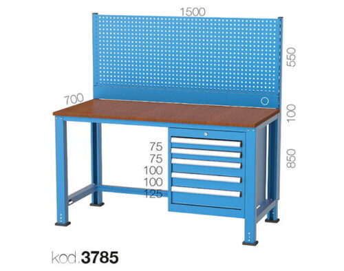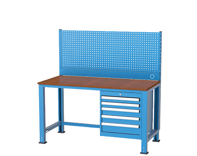6 twisted legs and connecting arms of our workbenches that can be disassembled are produced from 2 mm dkp sheet with electrostatic powder paint. 25 mm MDF is used as the table top. Special pressed rubber shoes are used to prevent scratching the floor. The main body of our chest of drawers used under the table is made of 1,20 mm dkp sheet. Internal net usage in the product; There are 3 drawers, 450×450 mm. Anodized aluminum profiles are used in the drawer handles. Inside of the drawer has adjustable separator ducts with 17 mm intervals. Behind the table, there is a tool hanging panel made of 1,20 mm dkp sheet and 10×10 square holes.