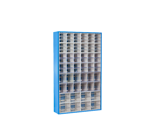 144 Plastik çekmeceli kutulu, çift yönlü ve tekerlekli metal gövdeli stand