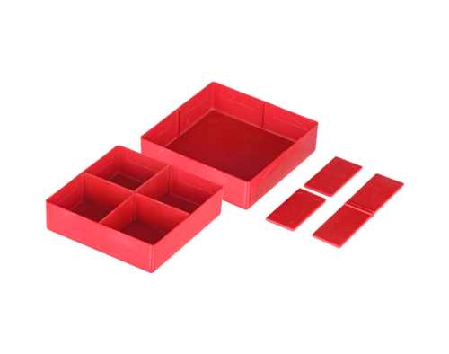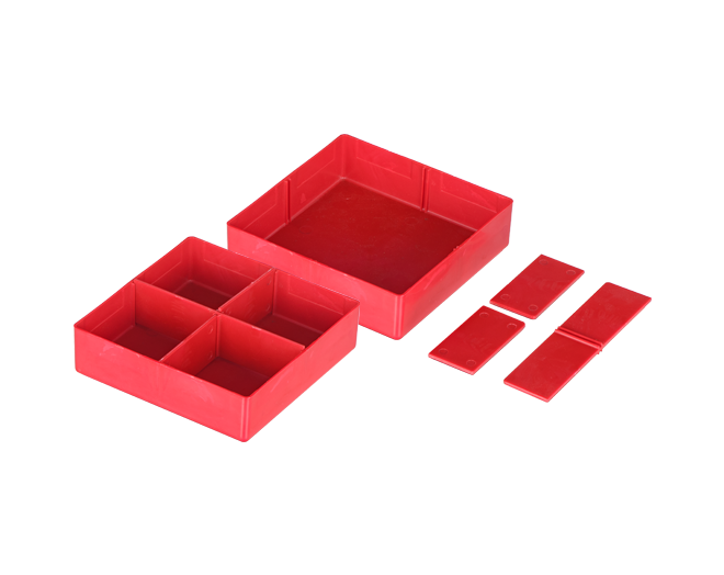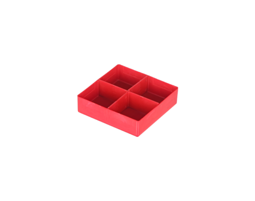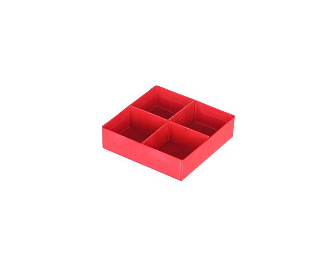 Plastik 4 bölümlü seyyar bölmeli kap Ölçüleri: 150 x 150 x 40 mm