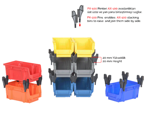 PX-100 Yükseltme ile üst üste eklenebilir ve yan yana birleştirilebilir